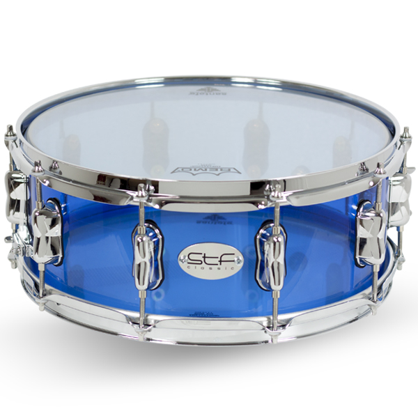 Caja banda/batería fabricada con casco de metacrilato y aros metálicos.