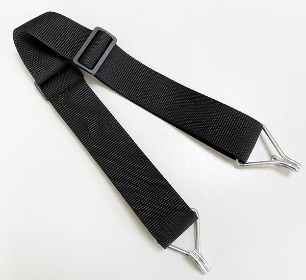 Correas fabricadas con cinta de nylon de 50mm de ancho. Dos mosquetones metálicos y dos hebillas. Largo mínimo 65cm. Largo máximo 117cm. Pensadas para instrumentos de batucada como surdos, repeniques, etc…