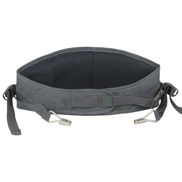 Correas de nylon gris acolchadas batucada. Con cierre de seguridad y cierre velcro. Dos mosquetónes metálicos y correderas. Largo cintura: mínimo 72cm-máximo 85cm. Para timbas, surdos, repeniques, tambores, etc.