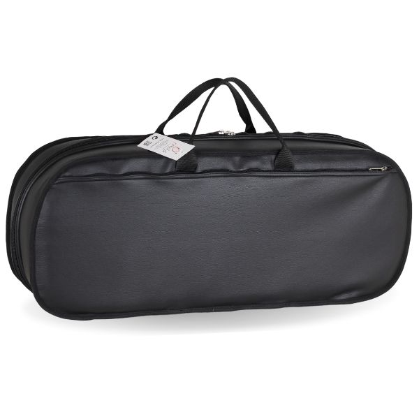 Fundas fabricadas con el exterior de polipiel, acolchado de 25mm, forro de velour negro, mochilas desmontables, 2 bolsillos (con capacidad para partituras) y asas. Medidas: 72x26x13cm. Peso: 1,44Kg.