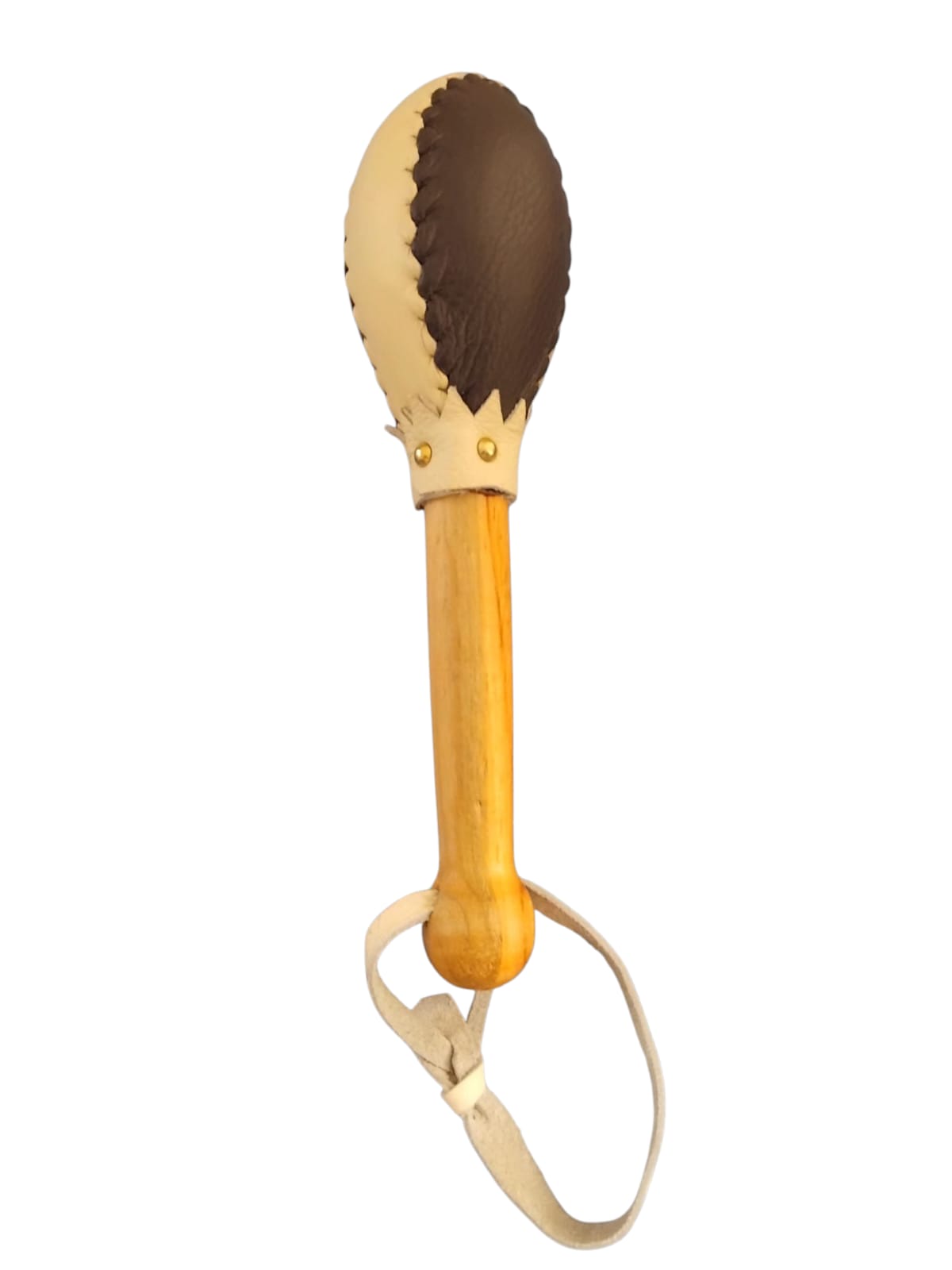 Maza con bola de cuero cosida para bombo de calanda, válida para bombos de 50 y 60cmØ.