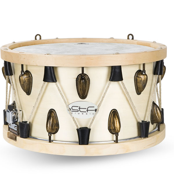 Casco de abedul 8mm (5 láminas). Aros Super Beech Custom. Parche Fiberskin + Ambassador snare. Sirve la funda cód. 420. Stf Classic.